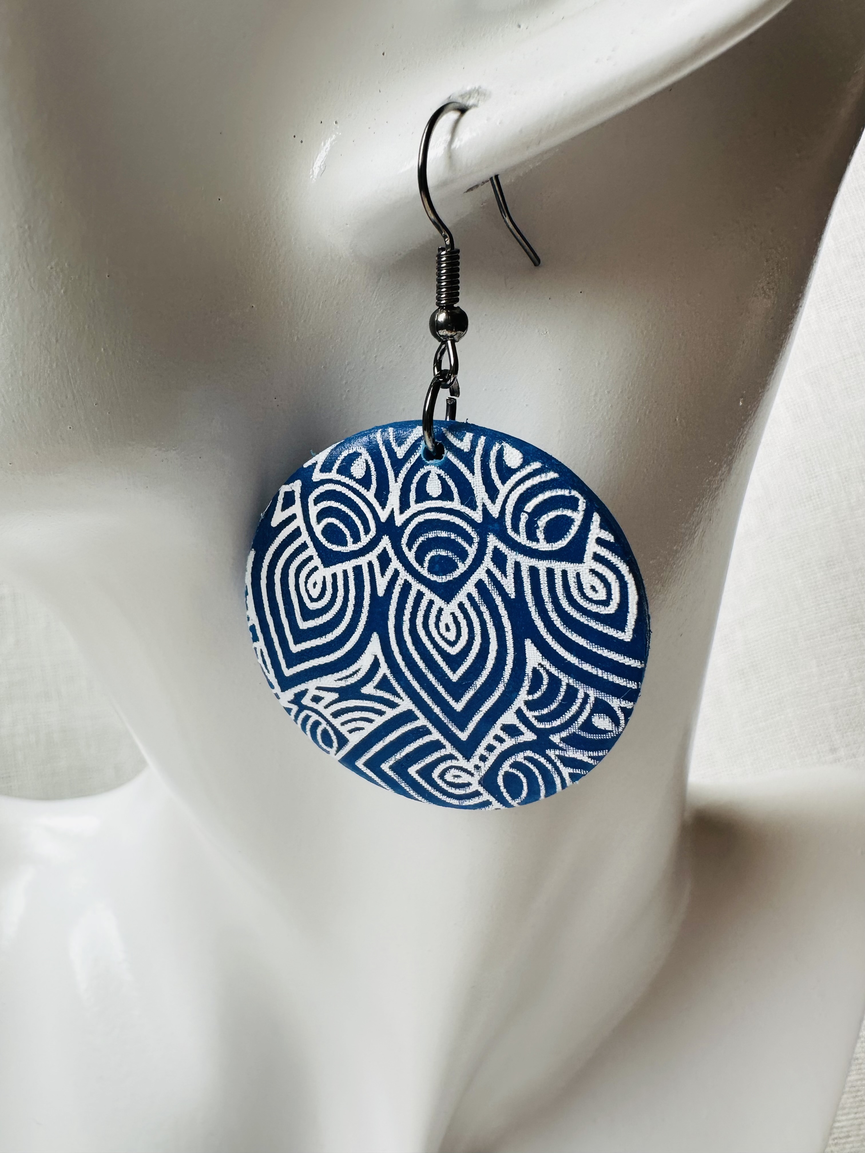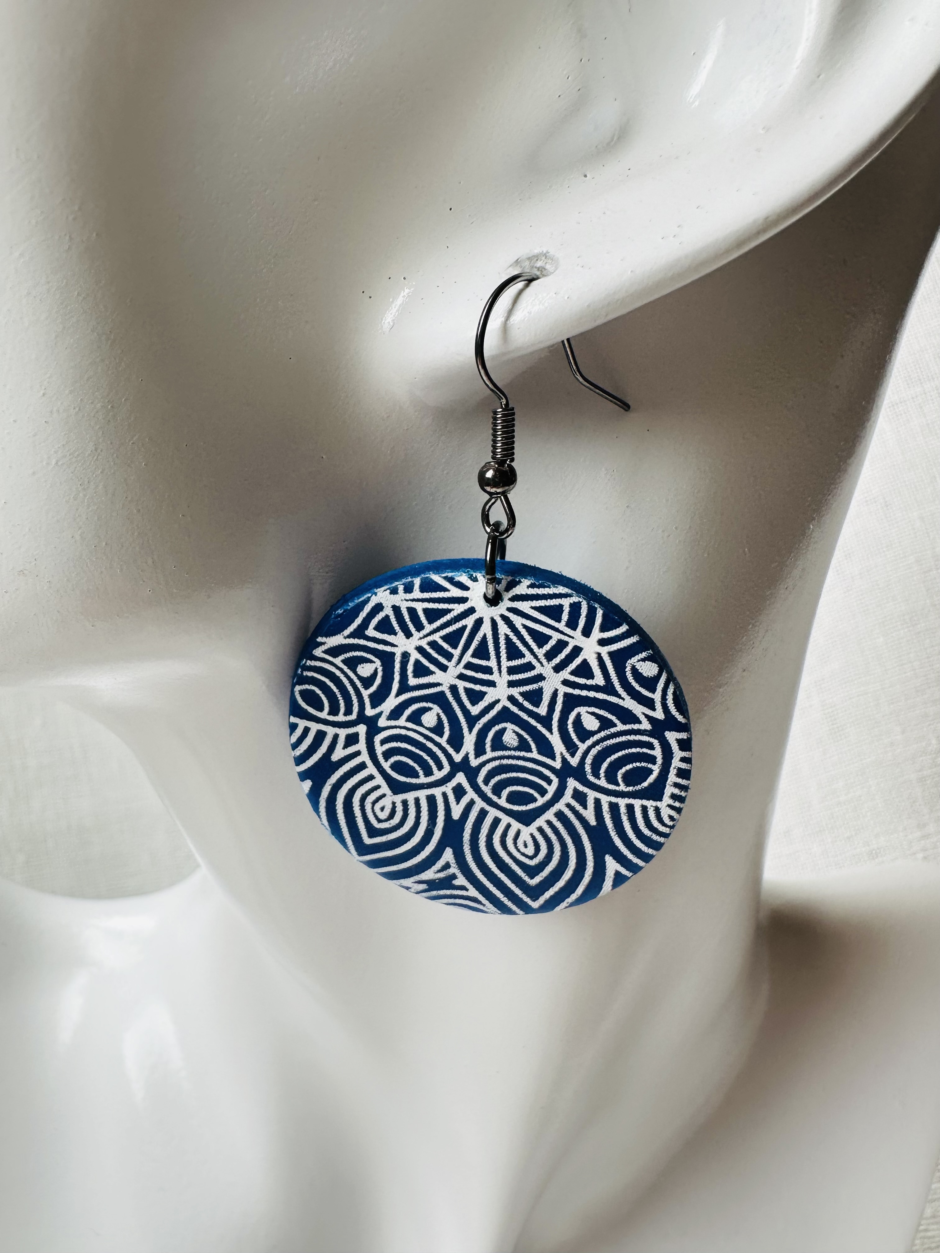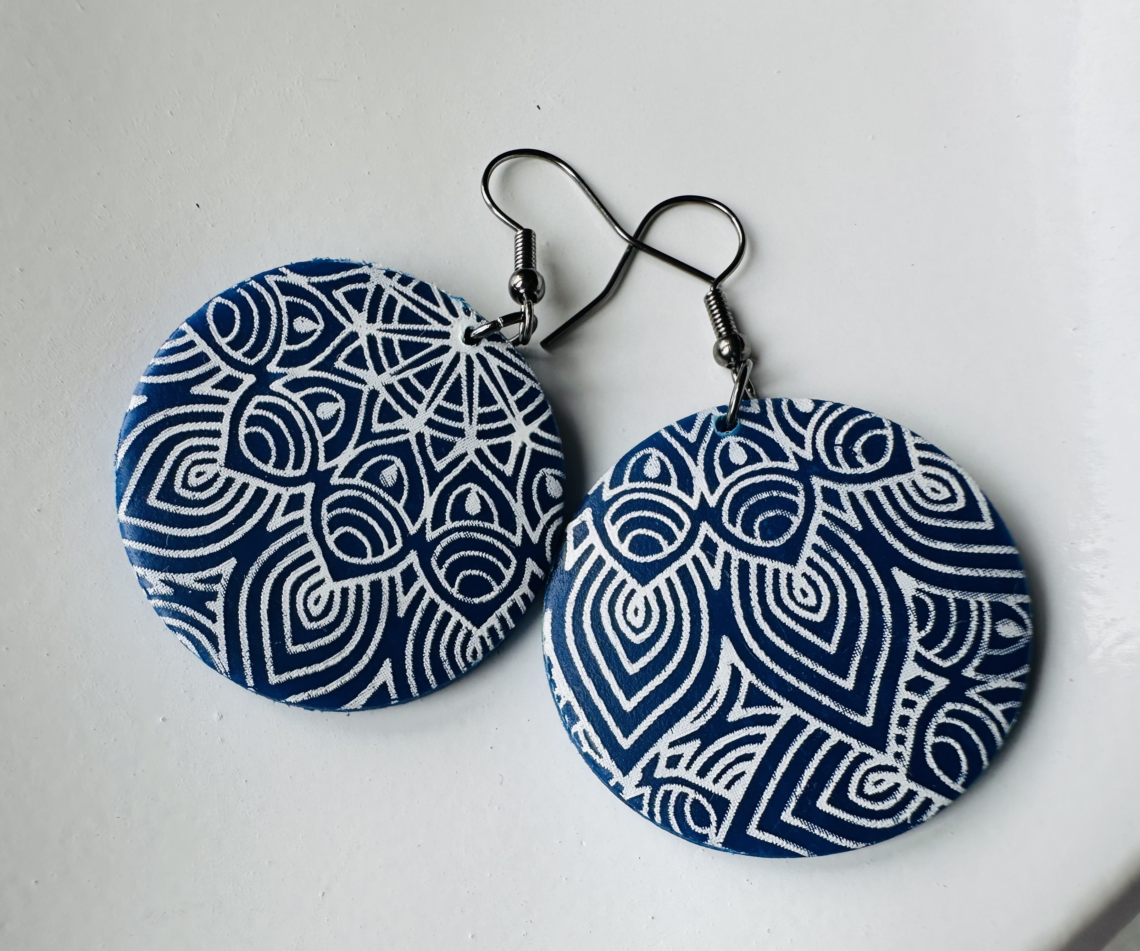 Rankų darbo auskarai (polimerinis molis, paprastas užsegimas, ilgis apie 5 cm.)